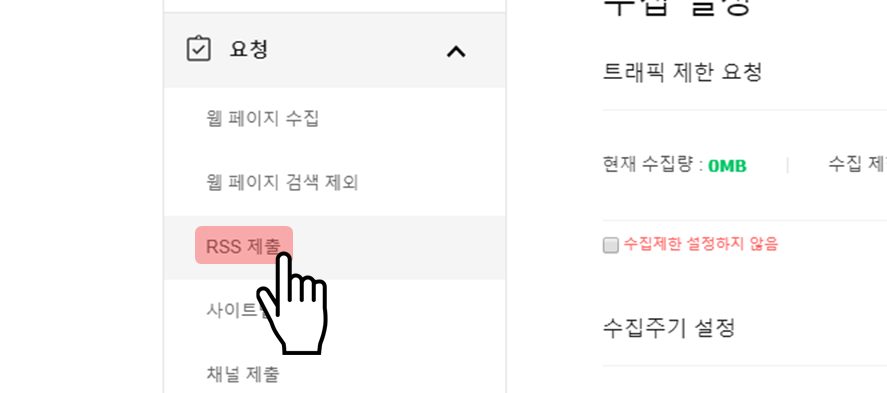 12. 요청 항목에서 RSS 제출 항목을 클릭해 줍니다.